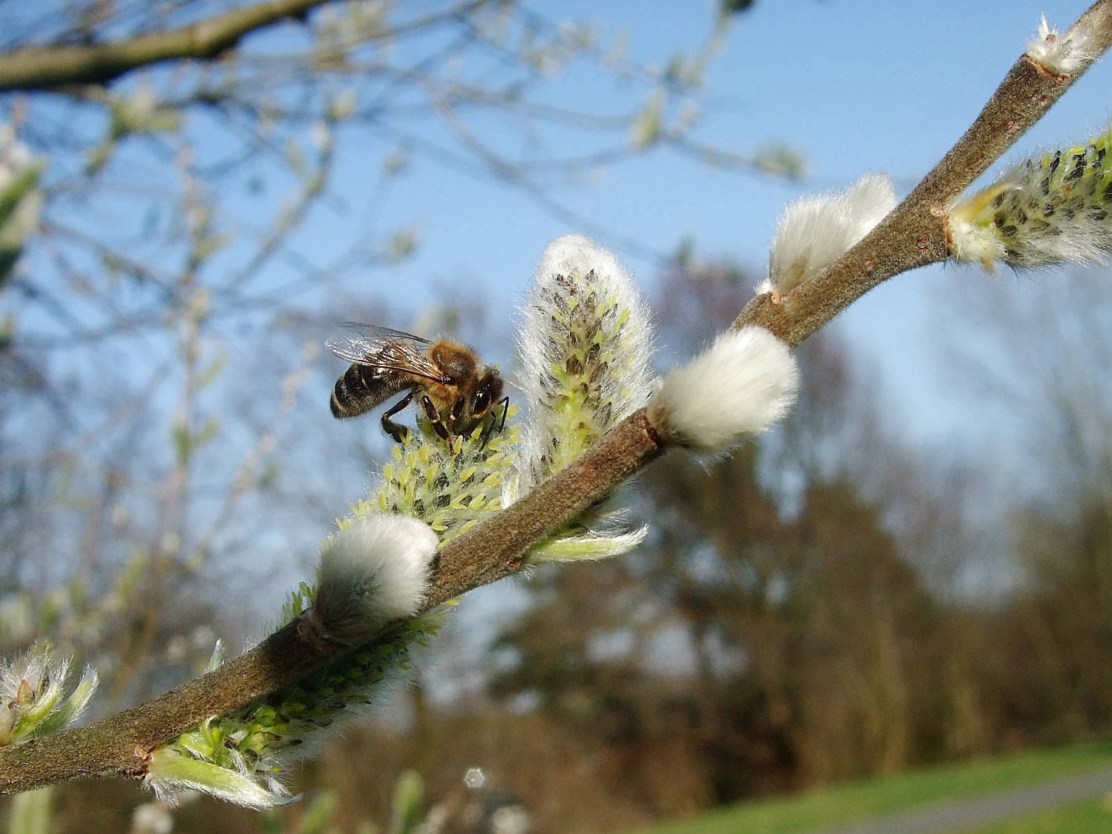 Biene auf Weidenblüte