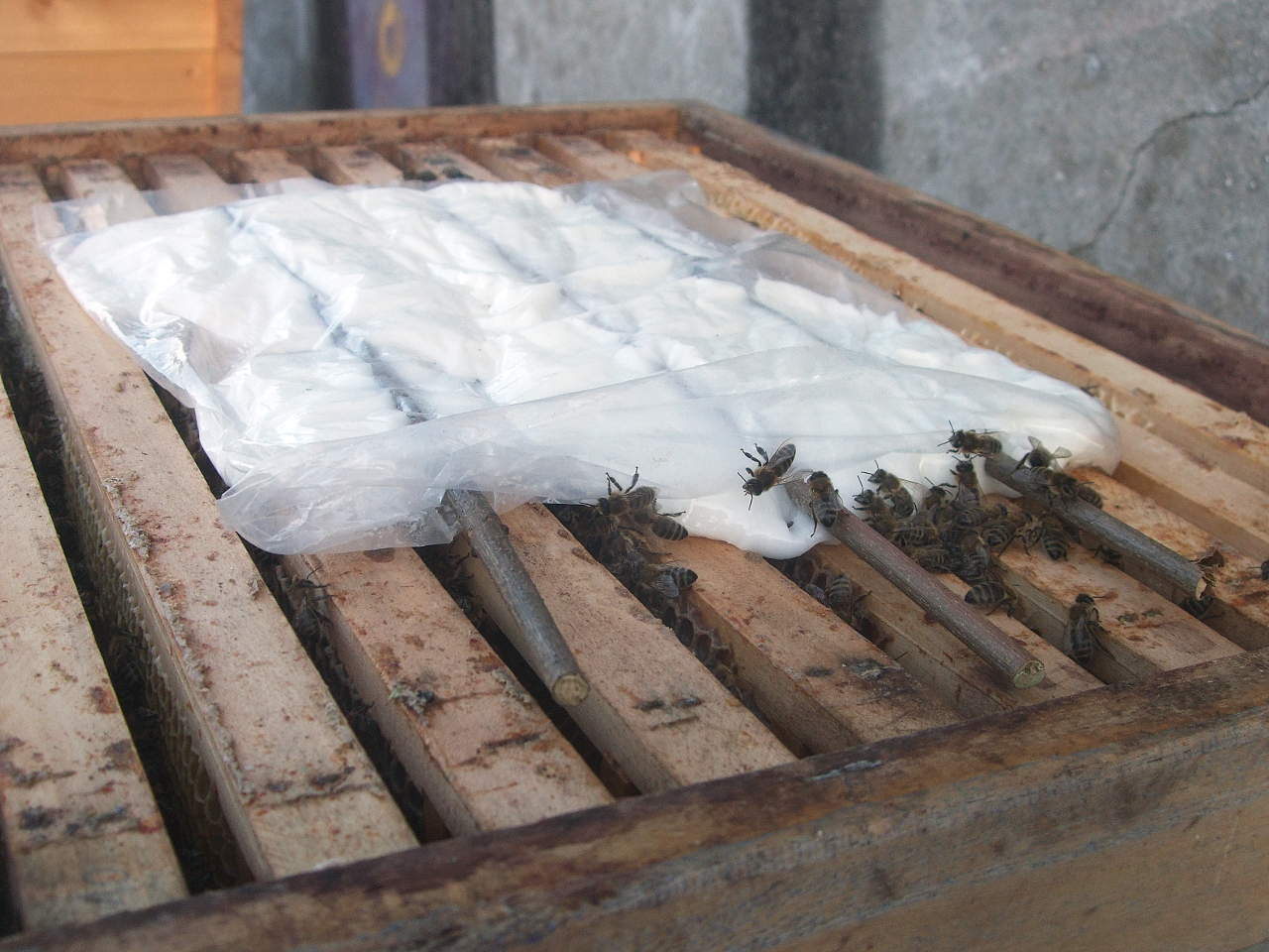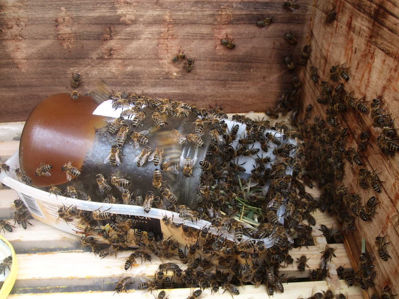 K1: Erste Fütterung mit 1 Kg Abtropfhonig.
